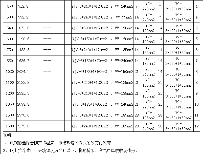 電纜線大小=(kw*1.8)÷3/平方=電纜的平方數(shù)(數(shù)值為約等于,如計(jì)算出來(lái)的平方?jīng)]有規(guī)格,選擇大一號(hào)規(guī)格的電纜),